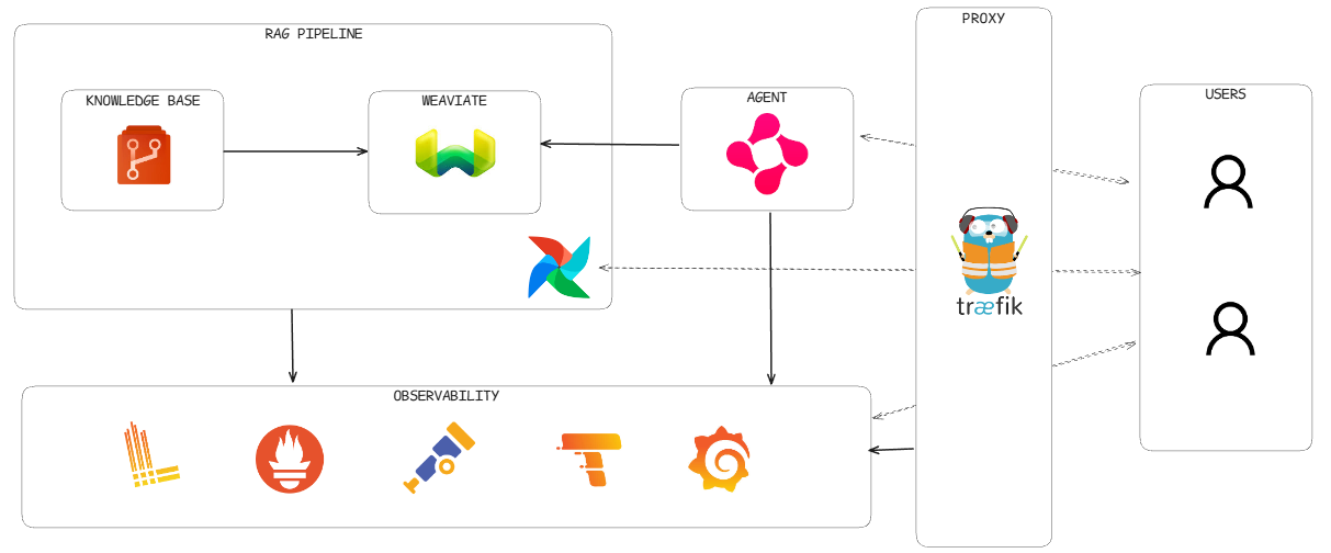 A RAG (Retrieval-Augmented Generation) system that provides an intelligent conversational AI interface with full observability, automated knowledge base ingestion, and enterprise-grade infrastructure.